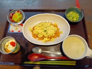 昼食はクリスマスメニューでオムライスに小さなパフェが付き美味しそうでした。